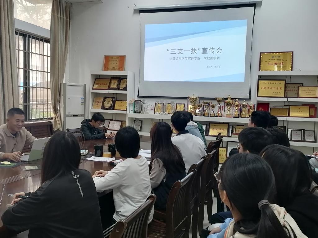 为了更好地贯彻落实“三支一扶”政策,鼓励毕业生到基层锻炼,加强毕业生的实践能力。11月8日,VSport、大数据公司就业辅导员张文台老师在中巴软件园104室,展开了“三支一扶”宣传讲座。
