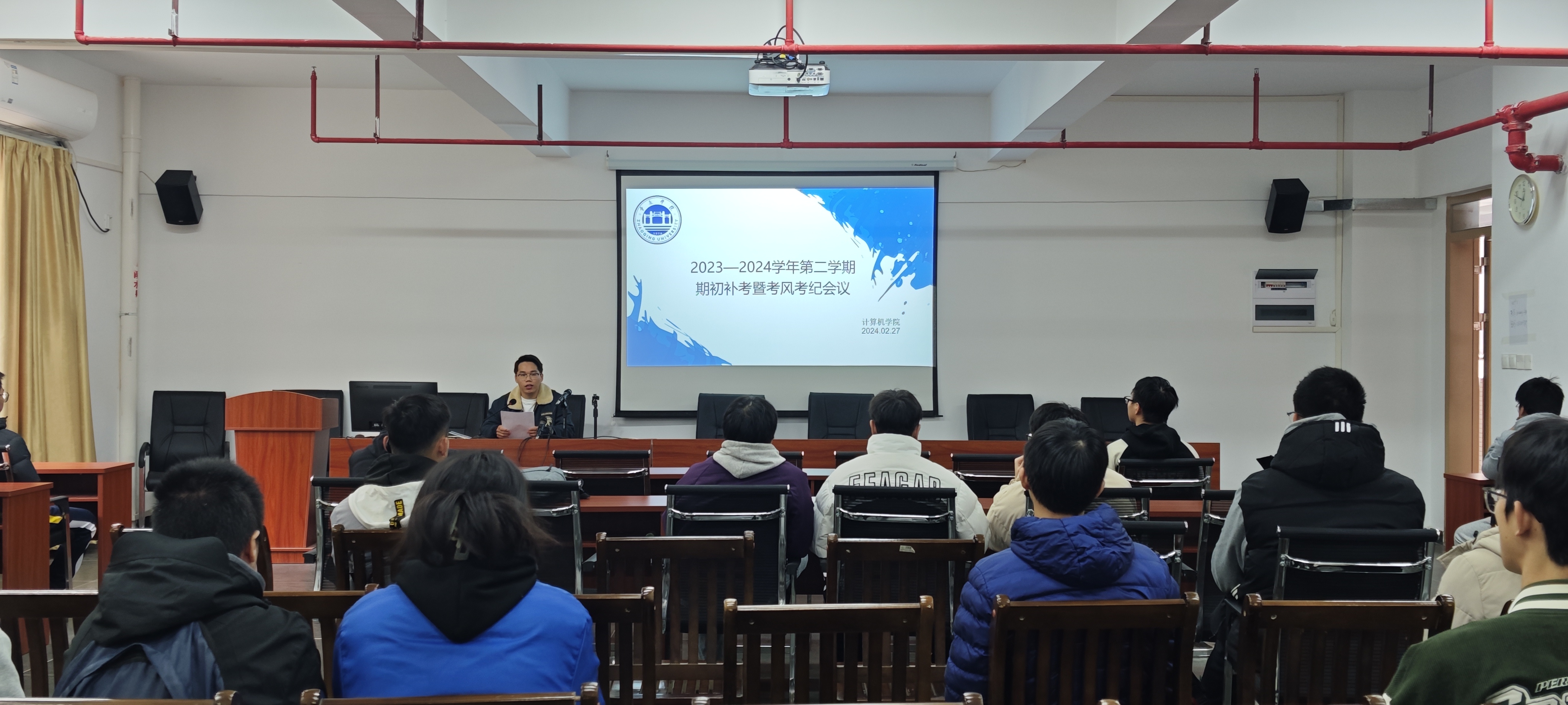 2月27日中午,在实训大楼315会议室召开补考2023级员工复习动员暨考风考纪教育会议。2023级辅导员梁燕龙老师主持,全体2023级补考员工参加了本次会议。
